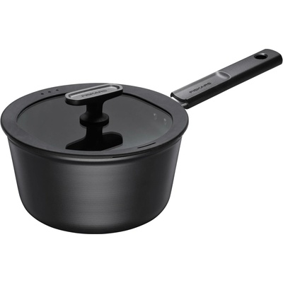 Fiskars hliníková pánvička pro náročné přípravy jídel. Nepřilnavé vlastnosti, nejlepší povrch Hardtec Superior, bakelitové bezpečné držadlo, silnější dno šetřící energii, moderní černý design.