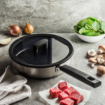 Pánev z hliníku pro náročné použití s jedinečnou technologií Optiheat. Optiheat zabraňuje přehřátí pánví na indukčních varných deskách. Má nejodolnější povrch Hardtec Superior+ s vynikající nepřilnavostí a velkou odolností. Tichá, skleněná poklička se silikonovým...