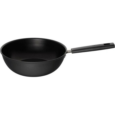Fiskars hliníková pánvička Wok pro náročné úkoly. Nepřilnavé vlastnosti, nejlepší povrch Hardtec Superior, bakelitové bezpečné držadlo, silnější dno šetřící energii, moderní černý design.