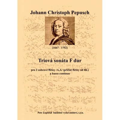 Triová sonáta F dur pro dvě altové zobcové flétny (příčné flétny) a basso continuo (klavír, violoncello). Sešit obsahuje klavírní doprovod plus samostatně vložené party pro...