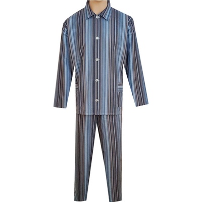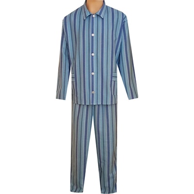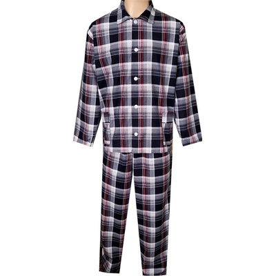 Pánské dlouhé pyžamo z flanelu ze 100% bavlny. Kabátek je celopropínací na knoflíky a se dvěma bočními kapsami. Kalhoty jsou volné s vyměnitelnou gumou. Ilustrační...