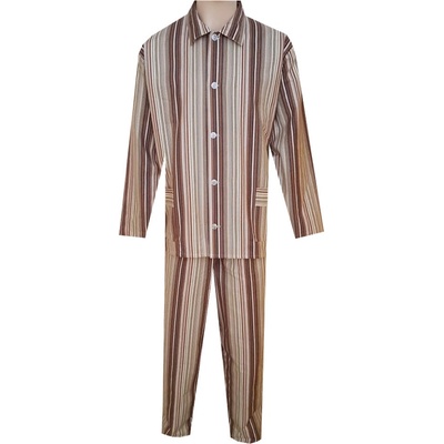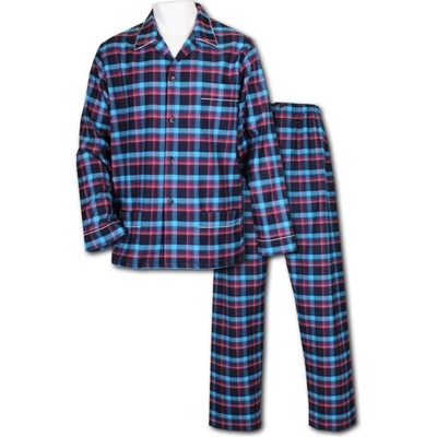 Pyžamo klasického střihu z teplého flanelu Kabátek je celo propínací na knoflíky s kapsami Kalhoty jsou s dlouhou nohavicí a propínacím poklopcem