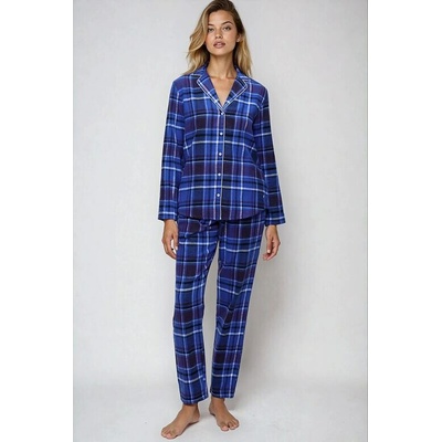 Elegantní teplé flanelové pyžamo dámské na kojení - modré karované Elegantní teplé pyžamo pro ženy z flanelu, což je extra teplý bavlněný materiál Pyžamo má propínací kabátek...