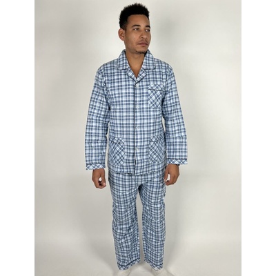 Modré kárované teplé flanelové pyžamo pro muže klasické Elegantní a dokonalé pánské pyžamo klasického střihu z teplého flanelu Ůžasný materiál, velmi příjemný na dotek,...