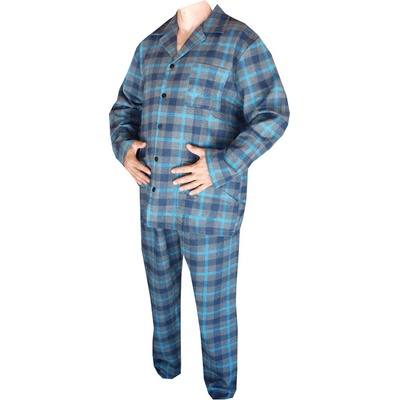 Modré teplé flanelové pyžamo pro muže klasické na knoflíky Elegantní a dokonalé pánské pyžamo klasického střihu z teplého flanelu Ůžasný materiál, velmi příjemný na dotek,...