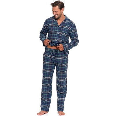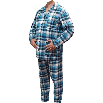 Pánské pyžamo Cedrik má příjemný flanelový materiál, který je lehce hřejivý a jemný na omak. Pyžamo je vyrobené ze 100% bavlny typu flanel. Má modro-zelenou barvu a káro...