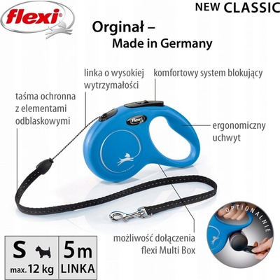Samonavíjecí lankové vodítko pro psy do hmotnosti 12 kg. Navíjecí vodítka Flexi poskytují Vašemu psovi potřebnou volnost výběhu. Díky brzdícímu systému, který je možno ovládat jednou rukou, máte svého psa vždy pod kontrolou. S chromovanou karabinou. Délka: 5 m