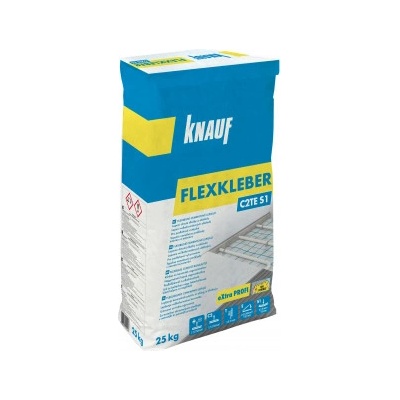 Flexibilní lepidlo na obklady a dlažbu KNAUF Flexkleber C2TE S1 mrazuvzdorné 25 kg Toto suché mrazuvzdorné cementové lepidlo se sníženým skluzem a prodlouženou dobou zavadnutí...
