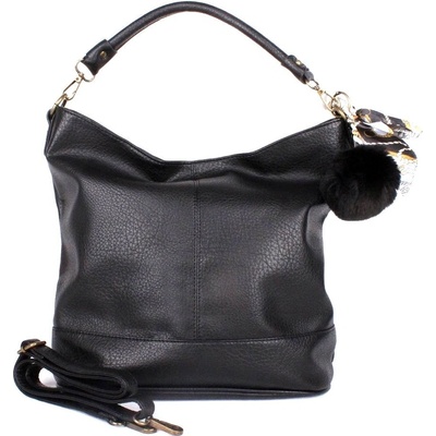 Moderní velká černá kabelka na rameno značky FLORA&CO - krátké ucho (výška cca. 25,5 cm) je odnímatelné díky karabinkám - díky přídavnému popruhu o délce 130 cm ji lze nosit i...