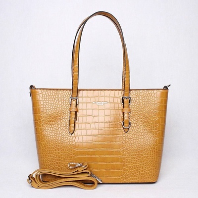 Elegantní velká hořčicová kabelka na rameno značky FLORA&CO s označením X9527. se vzorem krokodýlí či hadí kůže. Kabelka zaujme ladnými tvary a svým pevným materiálem,...