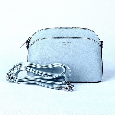Krásná světlemodrá crossbody kabelka ze syntetické kůže francouzské značky Flora&Co. Na přední straně je umístěno stříbrné logo značky. Na čelní straně je mimo loga také...