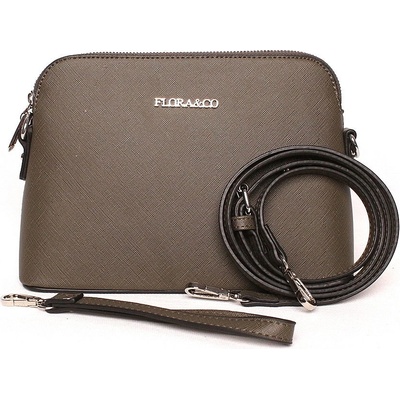 Úžasná pevná zelenohnědá (khaki) crossbody kabelka ze syntetické kůže značky FLORA&CO. Na přední straně je umístěno stříbrné logo FLORA&CO Kabelka je uzavírána na zip....