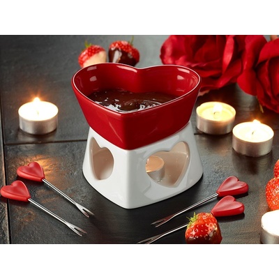 Keramická sada pro domácí výrobu fondue v desingu srdce pro zamilované. Sada obsahuje: 4 nerezové vidličky 1 srdce na svíčku 1 miska ve tvaru srdce Objem: 150 ml Rozměr:...
