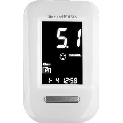 Absolutně přesný Glukometr Diamond PRIMA s vekým čitelným podsvíceným displejem, osvětleným portem pro vsunutí proužku a jednoduchou obsluhou nejlepší volbou pro střední a starší generaci.