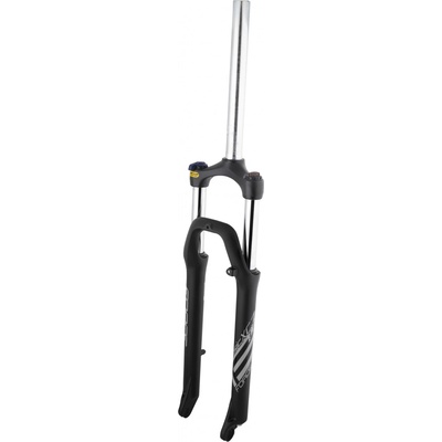 Odpružená vidlice pro MTB 26". Nabídne atraktivní černou úpravu v lesku, železný sloupek, zdvih 80 mm, hliníkové nohy, kompatibilitu s IS úchytem, kotoučovými a V-brzdami.