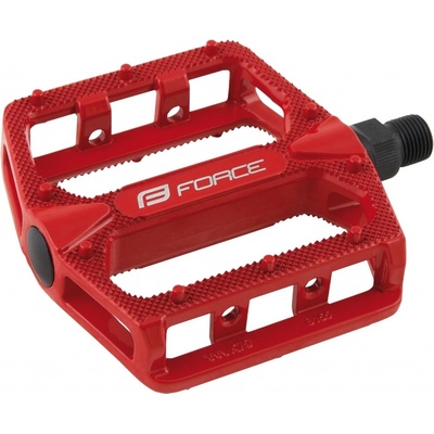 FORCE BMX Hot 670314 s piny, červené - tělo pedálu AL hliník - protiskluzová úprava s piny - piny jsou vyměnitelné - osa Cr-Mo - kuličková ložiska - velikost platformy : 109 x 100 x 28 mm - Váha pedálů : 443 gr