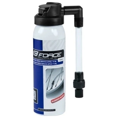 lepení-tmel FORCE opravovač defektu 75ml Art.Nr.: 740652 Opravný sprej FORCE pro bezdušové pláště (nebo plášťě klasické s duší) Sprej na bázi gumy pro nouzové opravy bezdušových...