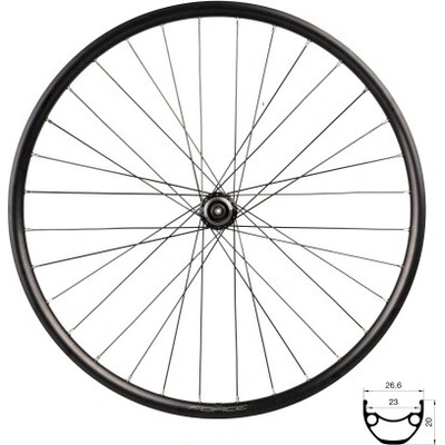 náboj SHIMANO HBM475 pro 6 děrové brzdové kotoučekuličková ložiska, osa: 3/8" x 108 x 100 mm, včetně rychloupínákuráfek 26" FORCE XC DISC 559x23, tubeless ready36 děr, jednoduché nýtyvýška ráfku: 20 mm, otvor pro ventilek: 8,5 mmmateriál ráfku: Al hliník, černýmateriál...