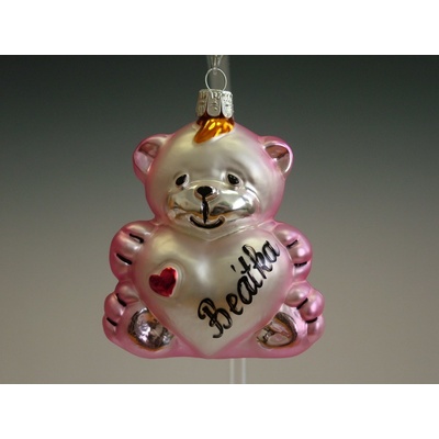 Skleněná ozdoba, forma, medvěd se srdcem velký, růžový, velikost 10x8 cm, cena včetně dárkového obalu. Na Vaše přání dopíšeme na medvídka jedno jméno, které zadejte do...