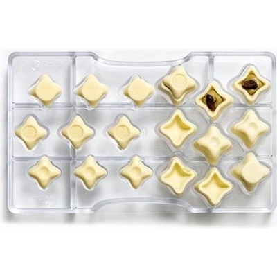Forma na čokoládu z polykarbonátu ve tvaru hvězdiček. Rozměry 20x 12 x 2,2 cm.