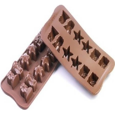 Kvalitní silikonová formička Silikomart na odlití 12 ks čokoládových figurek s vánočním motivem (zvonek, hvězdička, dárek). Formička je zabalená v pěkné papírové...