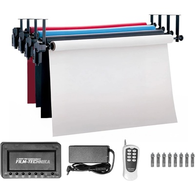 Tato motorizovaná elektrická sada pohonu pozadí může řídit 4 role papíru nebo látky na pozadí. Celu konstrukce lze snadno upevnit na stativy, nebo konstrukci připevnit do zdi,...