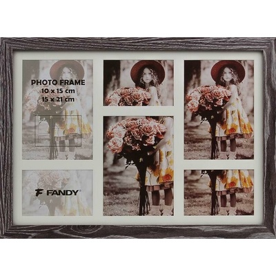 Dřevěný rámeček k zavěšení vertikálně i horizontálně, na 3 foto 10 x 15 cm a 3 foto 15 x 21 cm. Rozměr rámečku je 56,5 x 41 cm, šířka lišty 2,8 cm. Motiv fotoalba /...