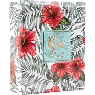 Uchovejte si své vzpomínky v tomto exotickém fotoalbu s nádhernými červenými hibiskusy a elegantními šedými palmovými listy. Stylový design s nápisem "Best Moments" v tyrkysovém...