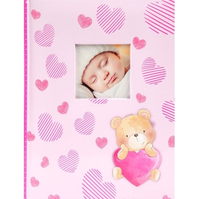 Kvalitní šité fotoalbum s dětským motivem Dětské fotoalbum v růžové barvě s odolnou šitou vazbou pojme až 300 fotografií 10 × 15 cm (dvě nad sebou) a nabízí prostor pro...