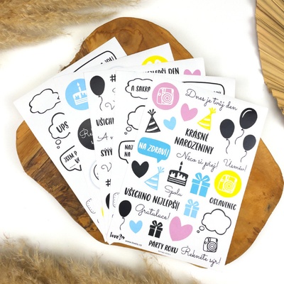 Krásné samolepky k narozeninám. Ideální k vytvoření narozeninového alba jako dárku, a nebo k zachycení narozeninové oslavy. Vhodné pro zdobení fotoalb a scrapbooking. Sada...