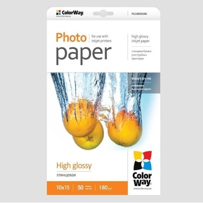 ColorWay High Glossy 10×15 cm 50 ks Nejpoužívanější typ jednostranného fotopapíru pro inkoustový tisk. Tento papír má hladký, lesklý povrch, odolný vůči vodě. Fotografie...