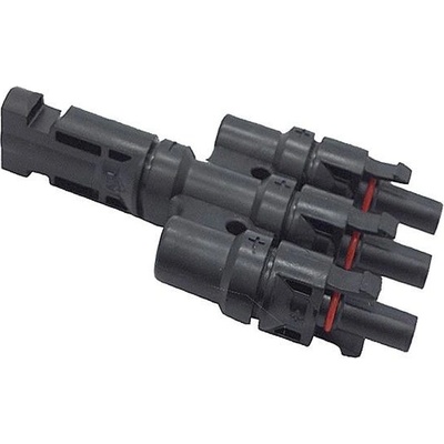 Rozbočení MC4, 1x konektor, 3x zdířka. Rozbočení s konektory používané na solárních panelech, slouží pro propojení více solárních panelů.Technické parametry: - provozní napětí:...