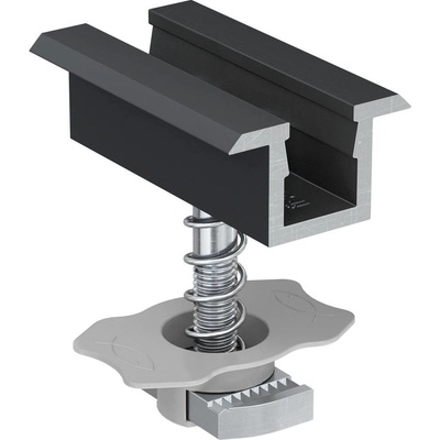 Pro upevnění dílů systému K2 na hliněné cihlové střechy s plochou taškovou střešní krytinou. Držák s prodlouženým otvorem pro upevnění kolejnice pomocí T-Bolt M10. Materiál:...