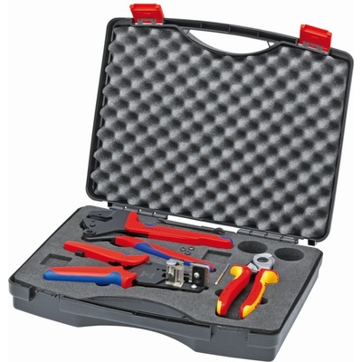 Knipex 97 91 01 (979101) Osazeno nástroji pro fotovoltaiku. - S přesnými odizolovacími kleštěmi 12 12 11 s tvarovanými nožimi pro menší hodnoty odizolování 1,5 / 2,5 / 4,0 /...