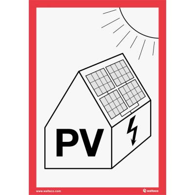 Tato cedulka je určena k umístění na zařízení nebo rozvaděči, ke kterému je připojeno napájení měniče. Označení upozorňující na výskyt fotovoltaické instalace na budově. Cedulka je vhodná pro použití ve venkovním prostředí.