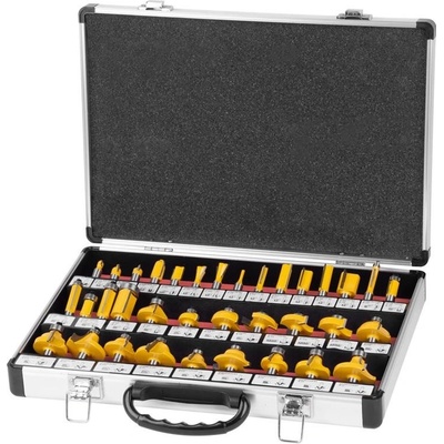 Sada tvarových fréz do dřeva, 35 ks v hliníkovém kufru. Průměr stopky 8 mm.