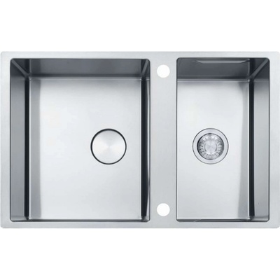 Nerezový dvojdřez, otočný, rozměr 820 x 520 mm, vana 410 x 480 x 200 mm a 270 x 480 x 200 mm, spodní montáž, minimálně 90 cm skříňka, s excentrem, 2 otvory z výroby.Součástí dřezu je kompletní příslušenství k montáži. (výpusť, sifon, příchytky atd.) Není třeba nic...