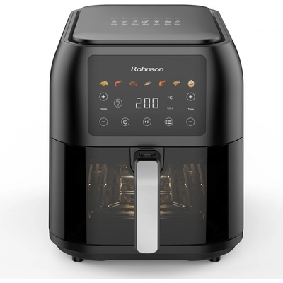 Horkovzdušná fritéza • příkon 1800 W • fritovací nádoba 7 l • 7 programů pečení • nastavení teploty 80–200°C • nastavitelný časovač 60 min.