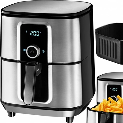 Horkovzdušná fritéza s fritovacím košem o objemu 6 l až na 1,5 kg surovin. Digitální termostat 80-220 °C. Časovač na 60 min. Rychlé nahřívání do 3 min.