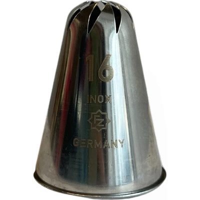 Řezaná trezírovací špička velikosti 16 patří k základní výbavě každého, kdo to s cukrařinou myslí vážně. Je vyrobena z kvalitního nerezového plechu, má výšku přibližně 5,5 cm a...