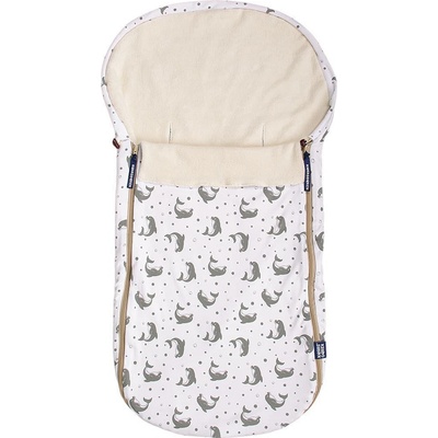 Lehký letní fusak z bio bavlny v bílé barvě s motivem šedých delfínů. Vhodný do kočárků i autosedaček 0/0+, vyrobený v ČR. ✅ Vhodný na léto – bez zateplení✅ 100% bio bavlna –...