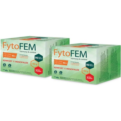 FYTOFEM harmony + control 90 tablet Doplněk stravy s unikátní kombinací přírodních fytoestrogenů a fytoserotoninu plus tři komplexy rostlinných extraktů, vitaminů a minerálů. Je vyvinutý speciálně pro ženy od 40. roku věku.