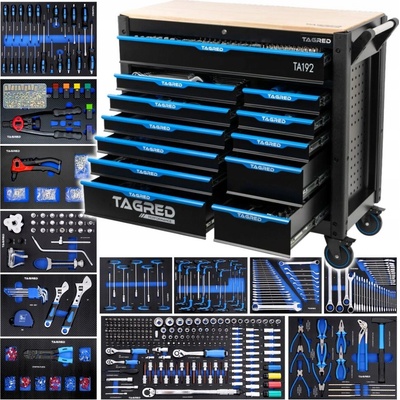 Dílenská skříň, vozík na nářadí TAGRED PERFORMANCE 12 zásuvek 713-el., vlastnosti: Předmětem nabídky je profesionální dílenský vozík s 12 zásuvkami na kuličkových ložiskách, s...