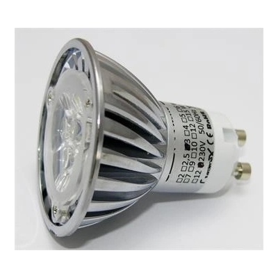 LED žárovka, patice GU10, napájení AC 230V, příkon 3W, barva světla 2700-3500K (teplá bílá), světelný tok 240lm, 3x LED typu SMD Everlight, úhel svitu 38°, náhrada 25W žárovky,...
