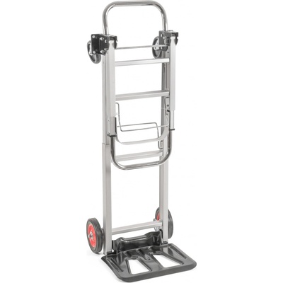 Multifunkční rudl 2 v 1 – rudl a přepravní vozík, pro manipulaci s těžkými břemeny, hliníková konstrukce, nosnost 150 kg, kola o průměru 15 cm.