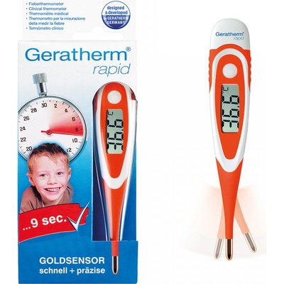 Teploměr Geratherm RAPID je spolehlivým a praktickým řešením pro měření teploty. Užívat jej můžete buď pod paži nebo rektálně. Teploměr je uzpůsoben k bezpečnému opláchnutí a vydezinfikování. Ohebný konec teploměru zajišťuje bezpečné měření, bez možnosti poničení...