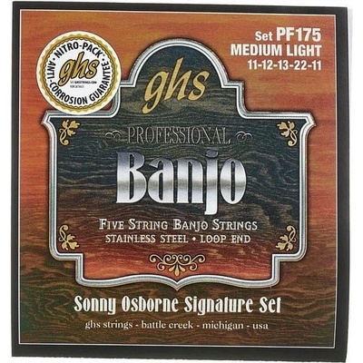 struny pro banjo, 5 strun, nerezivějící ocel, Loop End, vyrobeno v USA, tvrdost 011, 012, 013, 022, 011, model PF175