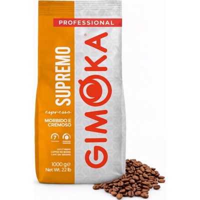Gimoka Professional Supremo zrnková káva 1kg Gimoka Professional Supremo je dokonalá směs Robusty (10 %) a Arabiky (90 %) Střední pražení směs dává jemnou, krémovou kávu s...