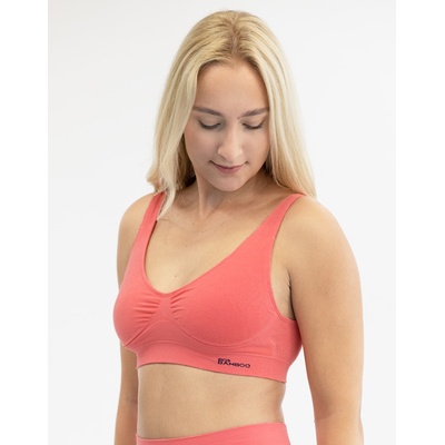 podprsenka sportovní s vycpávkami, bez kostice, bezešvé, jednobarevné značky GINA, kód 07014. Barva: tomato lékořice, Velikost: S/M, Složení: 80% Viskóza ( Bambus ) 16%...