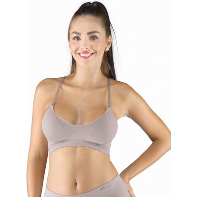 podprsenka sportovní s vycpávkami, bez kostice, bezešvé, jednobarevné značky GINA, kód 07014. Barva: šedohnědá , Velikost: M/L, Složení: 80% Viskóza ( Bambus ) 16% Polyamid 4% ElastanPodprsenka bez kostic s vyjímatelnými vycpávkami, dámské bezešvé sportovní prádlo....